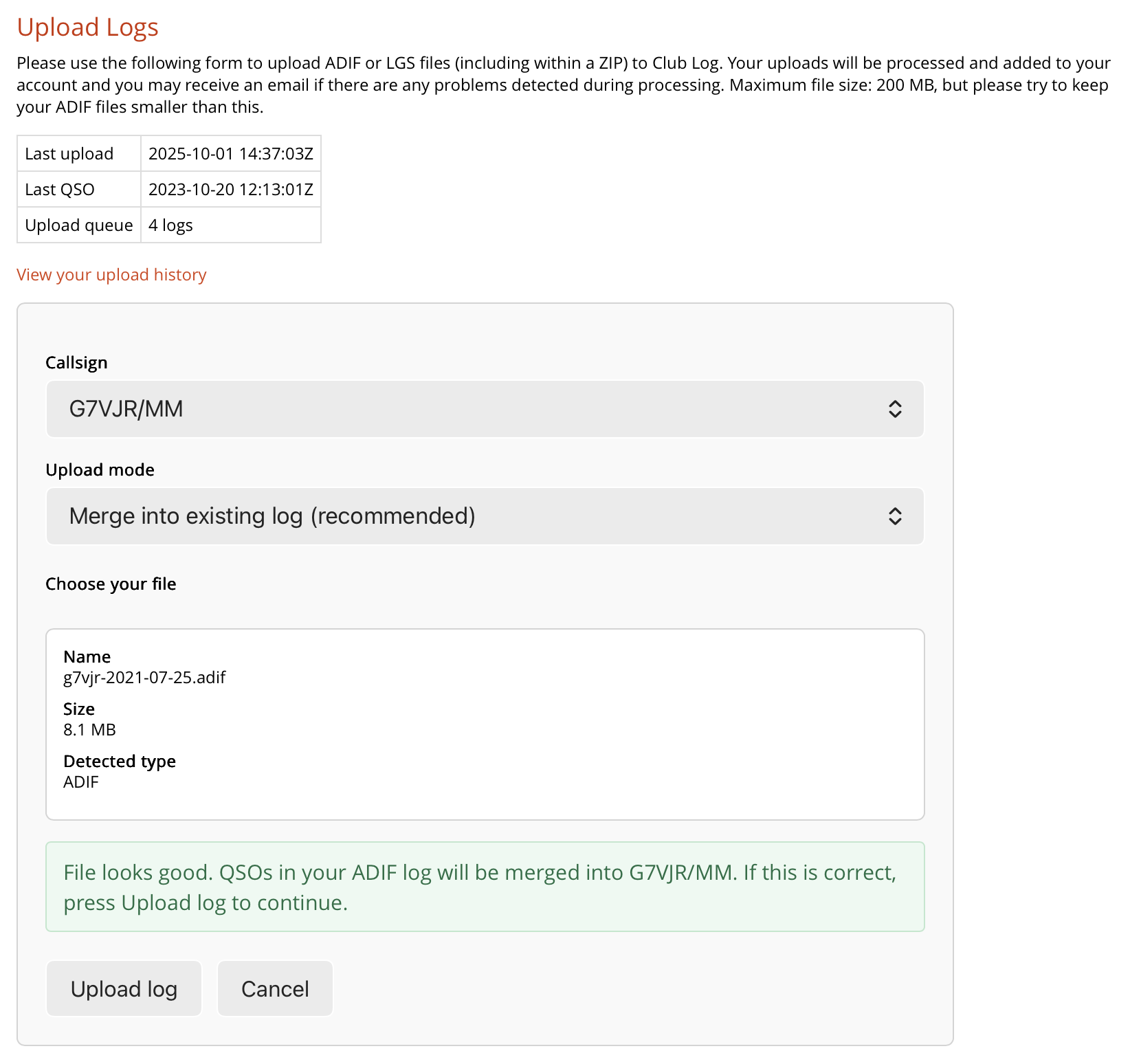 - Don't worry if you accidentally upload QSOs more than once - Club Log simply identifies and skips the duplicates unless the QSO details have changed.